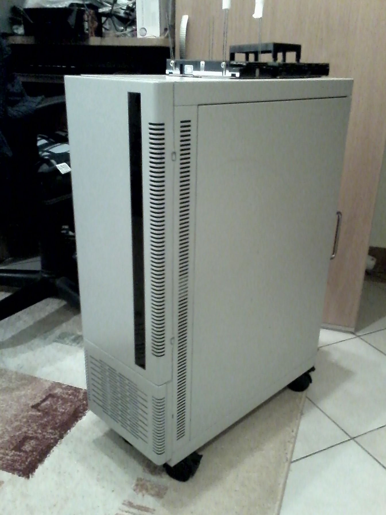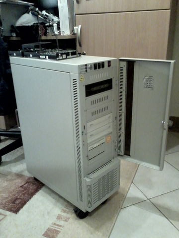 Németül van, nehéz is olvasni, de a lényeg látszik: két Pentium 2-es processzor és két SCSI fiók. Egy-két karc, valamint a zár és a SCSI fiókok hiánya jelezte, hogy használva volt, sőt, annyira nem is tartották nagy becsben. Nos, azon a napon rámosolygott a szerencse, mert szerelmes lettem belé és megvettem. A legjobb tulajdonságait itt összegezném is: