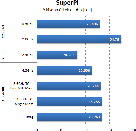 A CPU teszt eredményei megleptek kissé. Ha levesszük a superPI-t, akkor az A6-5400K nagyon jól teljesített.