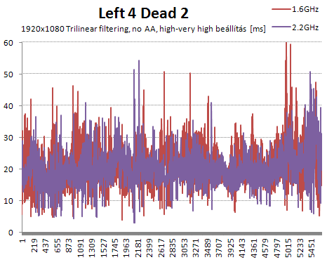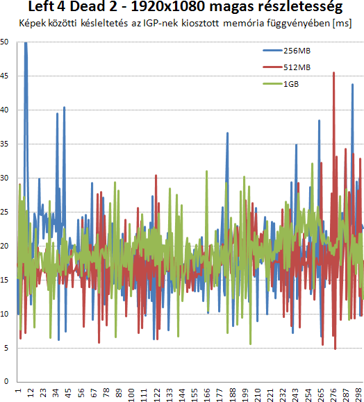 A Left 4 Dead-nek érezhetően jobb, ha legalább fél giga memóriát kap az IGP. Tovább növelve már nem simul jobban a görbe, de ez egy régi program.