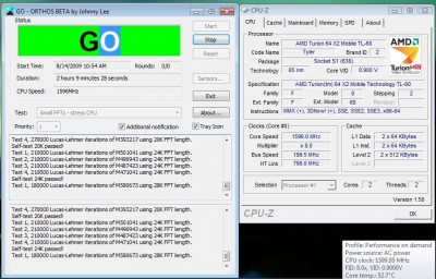 A feszültségállítást és tesztelést a következő módon csináltam. RMClock-ban aktiváltam a Performance on Demand nevű profilt amelyhez meg kellett határozni a szorzó-magfeszültség párokat. Ezután kiválasztottam egy bizonyos szorzót, amelynek a magfeszültségét elkezdtem fokozatosan lennebb vinni, míg elértem azt a szintet ahol lefagyott a gép. Innen kis lépésekben növelni kezdtem, tesztelve közben a stabilitást, míg találtam egy olyan értéket amin Orthos CPU tesztje hajlandó volt futni legalább két-három órán keresztül. Ennyi idő még nem biztosíték a teljesen stabil működésre (egyesek szerint minimum 24 órán át kell tesztelni) ezért az új értékeket utólag érdemes mélyrehatóbban is tesztelni (lehetőleg többféle programmal is).