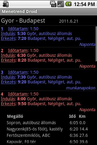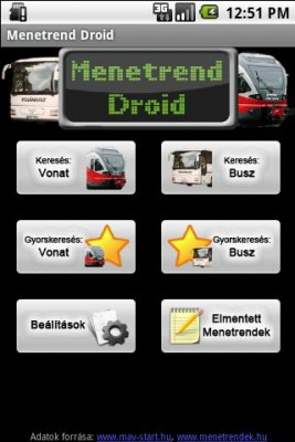 Online kereső a MÁV és a Volán magyarországi járataihoz. El lehet menteni a gyakran megtekintett menetrendeket, és van "Kedvencek" lista is. Még jegyvásárlási lehetőség is van benne, ami kifejezetten jól jöhet, ha lobogó fülekkel rohansz a vonathoz, és nem marad időd jegyet venni. Ilyen esetekben (ha van azon az állomáson jegypénztár) némely kalauz hajlamos kötözködni, és megkísérelni kifizettetni Veled a büntetés összegét is a jegyáron felül. Ha kedvesen mosolyogva odatolod az orra elé a telefonon megvásárolt jegyet, nem tud mit csinálni, hiszen van jegyed. A kezelőfelület könnyen használható, minden egyértelmű.