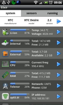 Egyszerű és nagyszerű system info. Widgetek is tartoznak hozzá, mindent megmutat, amire szükség lehet. Tárhely (microSD is), RAM, CPU, stb.