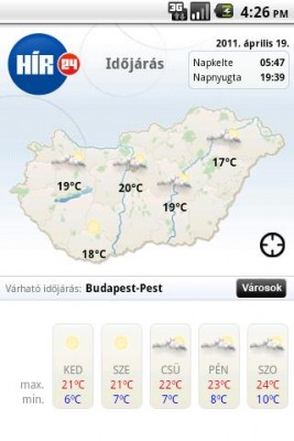 A TV24 közeli rokona. Megnézheted a legfrissebb és legfontosabb híreket témakörök szerint, és még kedvenceket is beállíthatsz. A hírek mellett megtalálható öt napos időjárás előrejelzés, valutaárfolyamok és tévéműsor is. Nagyon sok minden egy helyen, logikus, praktikus, jól kezelhető elrendezésben.