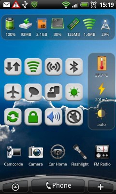 Százalékosan kiírja a status baron az akku töltöttségét, ráadásul több ikon közül is lehet választani. Nem helyettesíti a gyári akku-kijelzést, de tapasztalataim szerint pontosabb, mint a gyári jelzés.