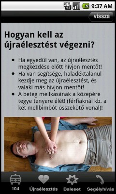 Az alkalmazásban olyan tanácsok szerepelnek, amelyek vészhelyzetben akár meg is menthetik valakinek az életét. A leírás laikusoknak készült, ezért közérthetően, nem szakmai nyelven fogalmazza meg azokat a tennivalókat, amelyekre szükség lehet a segítségnyújtáshoz. Egy érintéssel hívhatunk mentőt is, ha szükséges.
