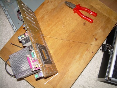 - Ha ez megvolt pihentessük kicsit, mert most valami vékony és hajlítható dologra lesz szükségünk! Szerencsére nekem sikerült ráakadnom egy nagyon vékony, fémsodrony szerű huzalra, ami műanyaggal van burkolva, így nem kellett attól sem tartanom, hogy még rövidre zár valamit.