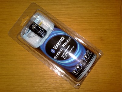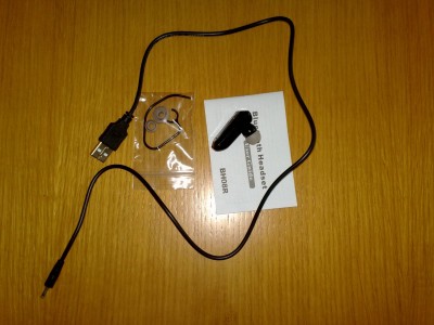 A doboz tartalmazza magát a headsetet, három gumiharangot (ebből szokás szerint a közepes magán a készüléken foglal helyet), egy fülcsíptetőt (vagy micsodát, ami a fülre ül, így tartja a headsetet), a töltőkábelt (erről később), és egy felhasználói útmutatót (magyar természetesen nincs). Továbbá tartalmaz még egy kis meglepetést is.