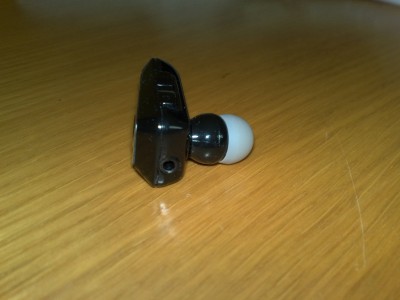 Az eszköz szép, nagyon szép. Az előlap betétje, és a felvevőgomb fém, ránézésre alumínium, esztergált mintával (tehát nem szál csiszolt), a készülék többi része műanyag, fényes fekete színnel. Márkajelzésként egy Bluetooth felirat, és egy logó található rajta. Jobb és bal fülben egyaránt kényelmesen és stabilan viselhető, mindkét eseten feltehető rá a fülcsíptető (bár én nem használtam még).
