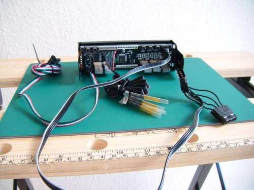 Van egy spéci USB kábel, ezt az alaplapon lévő 9 tűs USB helyre kell bedugni. A kábelen 2 ilyen USB dugó van. Gondolom a második csak a hosszabbítás miatt van rajta, szerintem csak az egyiket kell bedugni. Ezen keresztül irányítható majd szoftveresen.