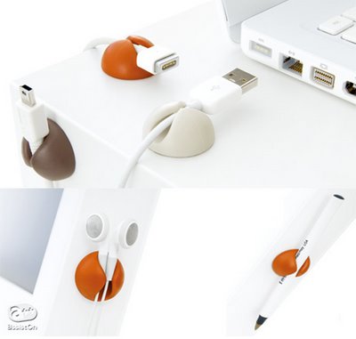 Több féle színben létezik ez a kis gumiból készült okosság, melyet egy kis öntapadós koronggal tudunk az asztalhoz vagy egyéb felülethez rögzíteni. Bármilyen kábelt és csatlakozót bele lehet tenni, de akár bármi mást is, ami belefér. (ceruza, cigi, csak a fantázia szab határt!)