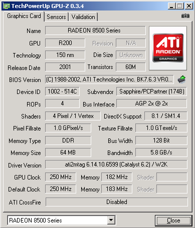 A Geforce 3 nem vonzott, a ti4200 meg nem fért bele a keretbe. Az MX/9000 párost túlságosan gyengének gondoltam. Maradt tehát a 8500LE, ami a 8500 LEbutított verzióját jelölte.