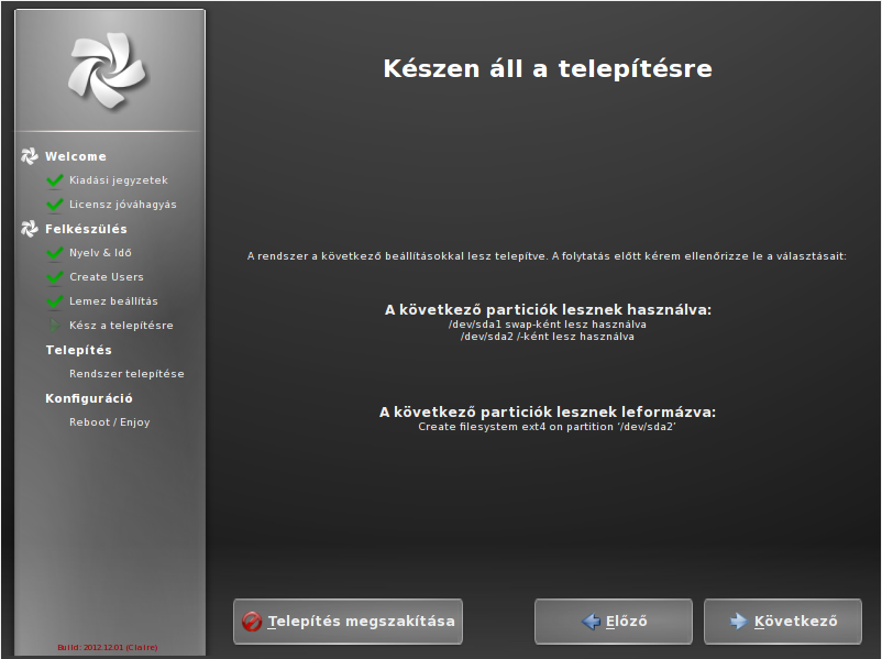 Végül kapunk egy áttekintő ablakot arról, hogy mit is csinálunk a partícióinkkal.