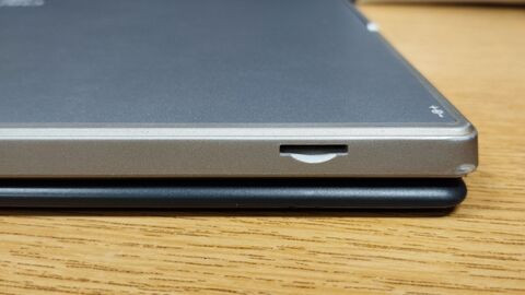 A tablet jobb oldalán találjuk a töltő csatlakozót, micro HDMI-t, USB3-as és USB-c csatlakozót.