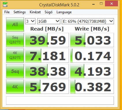 CrysralDisk sebesség értékek: