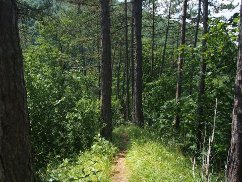 Visszafelé rá is tértünk a kis útra és ezt sem bántuk meg. A meleg miatt kicsit fárasztó volt a menetelés, de aztán egészen különleges ösvényre tértünk rá. Ugyanis az erdőben magasodó gerinc mentén vezetett a jelzés A vékony csapáson nem fértünk el, csak libasorban, mellettünk jobbra, is balra is szakadék volt.
