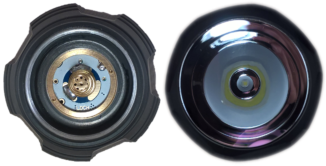 Alatta a méretes és nehéz alumíniumból készült sima felületű (SMO) reflektor központosító gyűrűvel fekszik fel a CREE XPL-HI emitter köré. Az alu csillag alatt hővezető pasztát találunk és két csavarral van a fejhez rögzítve. A fej hátsó részében egy réz gyűrűvel van beszorítva az LD-29-es vezérlő.