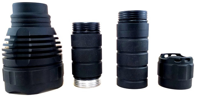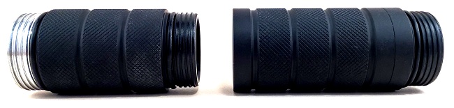 A test masszív alumínium csőből lett kialakítva, a falvastagsága meglehetősen nagy így attól nem kell tartanunk, hogy ha feldől vagy ütést kap a lámpatest behorpadna. A fej felé eső hatalmas menet trapéz kialakítású és nem kapott eloxálást, míg a zárókupak irányában végig bevonatos így csak a cső legvégén lévő felület továbbítja a testben az elektronokat. A két akkus felhasználáshoz járó kiegészítő cső esetén is figyeltek erre, így a lámpatest felé eső részén és a zárókupak felé eső menet is eloxálást kapott, így bárhol tekerjük szét a lámpatest hátulsó része után az áramkört megszakítjuk mindenképp. A külső felületén lévő gyűrűs megmunkálás nem csak jól néz ki, hanem stabil fogást is eredményez, bár ebben nagy szerepe van a 35 mm-es átmérőnek is.