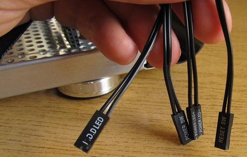 Az előlapon kapott helyet a bekapcsoló- és újraindítógomb páros, alatta pedig a szokásos 2 db állapotjelző LED. A gombok nem lötyögnek, nyomáspontjuk határozott. Mindkét LED kék színnel világít.