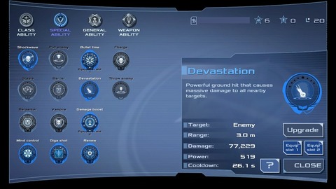 Az igazat megvallva viszont majdnem teljesen mindegy, melyik karakterrel kezdünk a játéknak. Leszámítva az első két küldetést, mindegyik karakter megveheti és használhatja bármelyik fegyvert, ami neki szimpatikus. A különbség igazán az egy darab egyedi képességükben és a történethez fűzött hozzászólásaikban van. Az összes többi készségük, ugyan sorrendileg megvariálva, de mindnek ugyanaz. Ezekből viszont van bőven, szám szerint 18 aktív és 11 passzív érhető el a játékban. Róluk is elmondható, hogy némelyikük igen hasznos és (olykor túl) erős, némelyikük meg szinte használhatatlan. Az aktív képességek között megtalálható az időlassítás, védőburok, rövid sebzésnövelés, gyógyulás, hátralökés, hogy csak néhányat említsek.