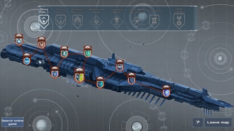 Minden játékmód, beleértve a fő küldetéseket, egy a hajóról készült hologramról érhető el a vezérlőteremben. A fő vonal természetesen a történet végigjátszása. Ez összesen 20 küldetésből áll, váltogatva a harcokat mind zombi, mind pedig emberi ellenfelek ellen. A küldetés végén pedig, olykor összefutunk erősebb szörnyekkel, pálya végi főellenségekkel.