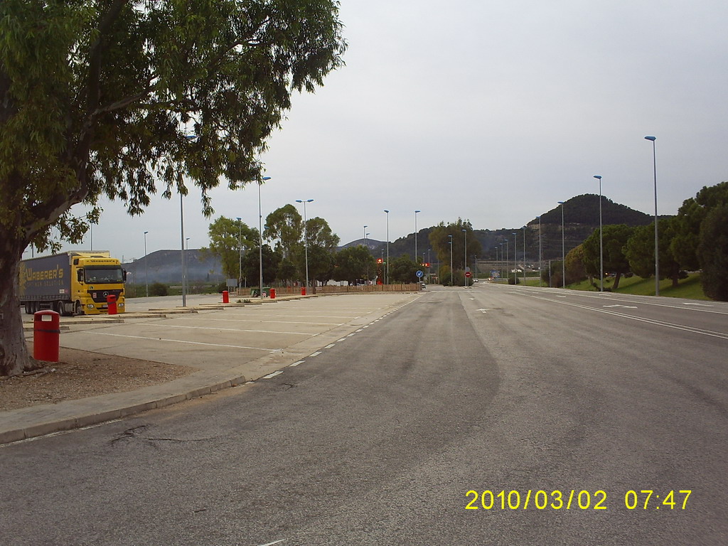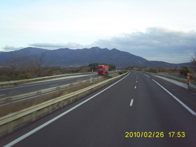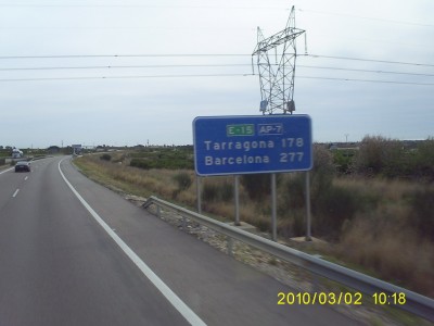 Ezen a részen meg sosem jártam Spanyolországnak, mindig Madrid, vagy attól lefele volt az uticélom, az ország belseje fele, az a táj olyan, mintha a Holdon menne az ember. Most viszont órákon át a tenger mellett vezetett a pálya, óriási narancsligetek között, ameddig a szem ellátott, sárgállott a sok narancs. A taj is sokkal változatosabb, mint Madrid fele, nem győztem fényképezni menet közben. A forgalom sem volt erős, egyedül Barcelona korul erősödött meg, de ott sem volt veszélyes. Ahogy haladtunk dél fele, a hőmérséklet is egyre emelkedett, 9 órakor már 20 fokot mutatott a computer, és egyszer csak azt vettem eszre, hogy mar nem tudok jobban visszavenni a fűtésből, majd nem sokkal később a klímát is bekapcsoltam kis időre.