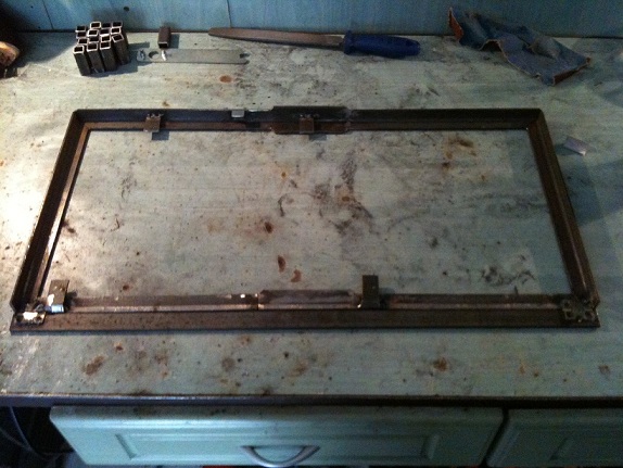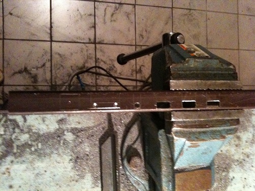 Az asztal teteje a monitoron lesz, tehát leszedtem a káváját és a csavarok helyén továbbfúrtam a lyukakat, a zár szerkezetet kiszedtem, mert a súlya úgyse nyitja ki.
