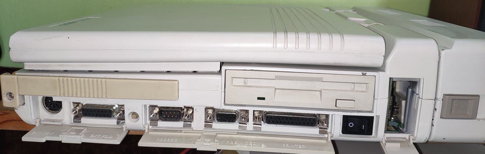 A gép jobb oldalán van a bekapcsológomb, fölötte az 1,44 MB-os Floppy drive, illetve a RAM bővítőnek a nyílása. Továbbá az IO portok is itt kaptak helyet egy soros és egy párhuzamos port formájában. De külső billentyűzet, külső floppy, és VGA monitorcsatlakozó is van.