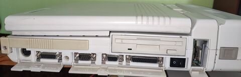 Megmondom őszintén, 2 gépből raktam össze ezt, hogy a lehető legszebb állapotnak örvendezhessen, így ebből fakadólag 2 ilyen HDD-m is van a géphez, tehát könnyedén tudom cserélni: míg mondjuk az egyiken sok játék + DOS van, addig a másikon a játékok helyét egy Windows 3.1 fogja felváltani. Ilyen megoldást korabeli gépeknél még ritkábban találunk mint napjainkban. A HDD kibontásához nem kis előkészület szükséges, de szerencsére ennél a gépnél nem. További megjegyzendő, hogy a HDD alatt egy kis nyíláson könnyedén bővíthetjük a laptopot 287-es matematikai társprocesszorral is, szintén mindenféle szétszedés nélkül.