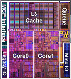 A Clarkdale CPU lapkája nagyon leegyszerűsítve az imént említett Bloomfield kettévágott és 32nm-re lekicsinyített leszármazottja. Fele akkora magszám valamint az i3/i5-ös verziók esetében az L3 mérete is pontosan a felére, 4MB-ra zsugorodott össze. Ezzel még nem is lenne probléma de a Bloomfield egyik legfőbb újítása kimaradt a Clarkdale-ből, és ez nem más mint az integrált memóriavezérlő.