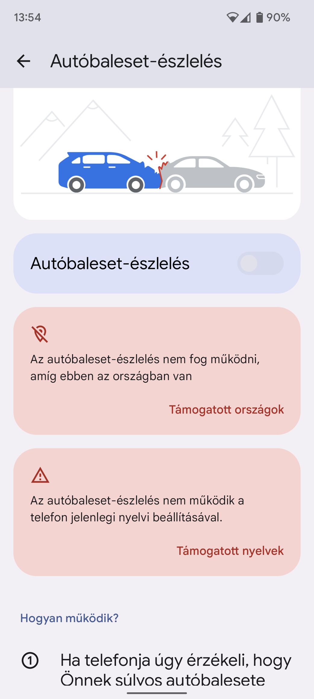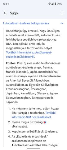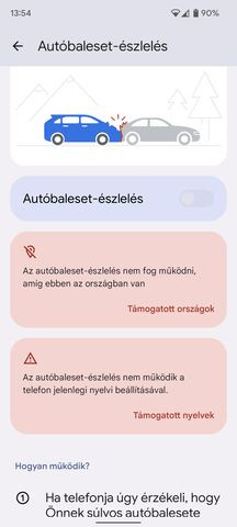 android 12, szabályok és autóütközés észlelő