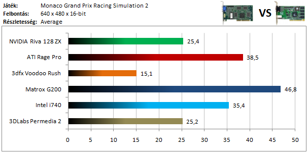 A tesztet a Banshee nyeri, nyomában szorosan a Savage 3D-vel. Mivel a játék talán azonos engine-t használ a Castrol Honda Superbike-al, ezért ennek megfelelően az NVIDIA kártyái itt sem brillíroznak. A TNT-nél rosszabbul már csak a Rage 128 járt, amivel lefagyott a program.