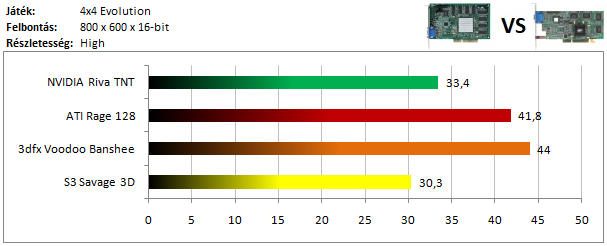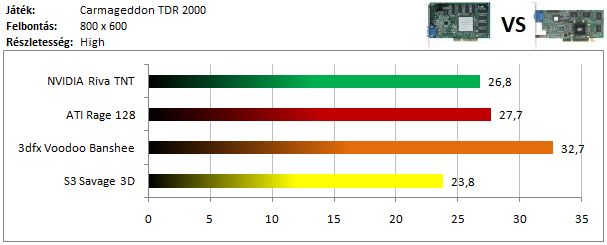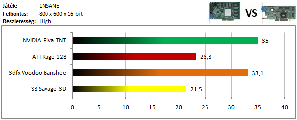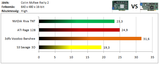 A Banshee mögött ezúttal a Rage 128 futott be másodikként, hiszen a TNT-nek nem túlságosan feküdt ez a játék, és alig volt csak képes megelőzni a jóval szerényebb specifikációjú Savage 3D-t.