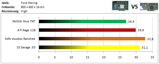 Ezt a játékot az előző résszel ellentétben már nem felejtették el a 3dfx kártyáira optimalizálni, így kiválóan szerepelt a Banshee, és vezeti a csoportját. Az ATI és az NVIDIA versenyzője szinte azonos eredménnyel zárt a dobogó két alsó fokán, de a Savage 3D ezúttal nem tud a nyomukba érni.