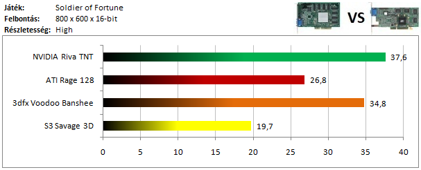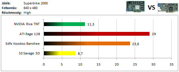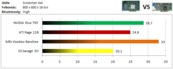 Kiválóan szerepelt a Banshee, hiszen megelőzte a TNT-t és a Rage 128-at is, míg a sort szokás szerint az S3 versenyzője zárja.