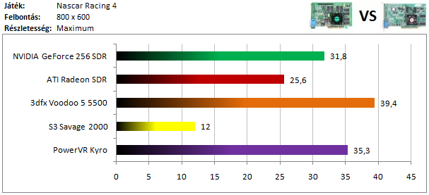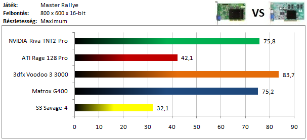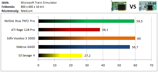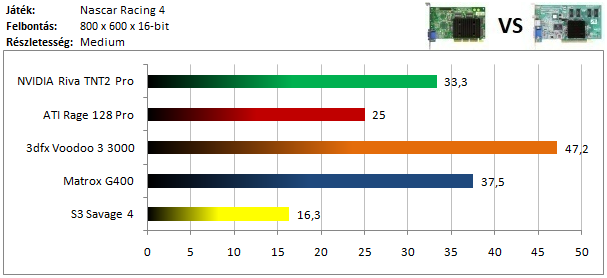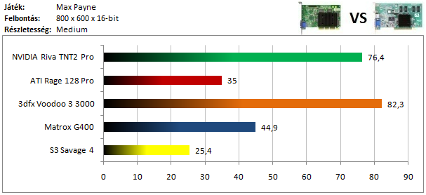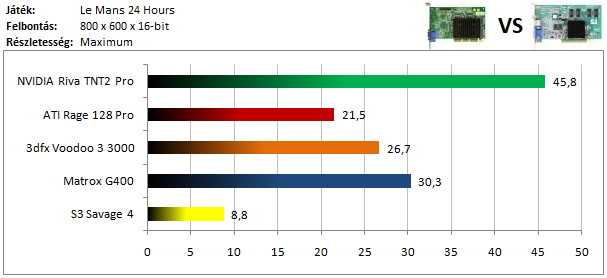 A Voodoo 3 megnyerte a harmadik csoport versenyét, de összességében minden szereplővel jól futott a játék 800x600-as felbontásban.