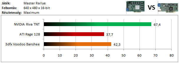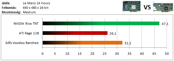 Kiválóan szerepelt a Voodoo 3 ebben a játékban, de a TNT2-t a Matrox G400 is megelőzte. A Rage 128 Pro viszont nem tudott játszható sebességet biztosítani a tesztelt beállítások mellett.
