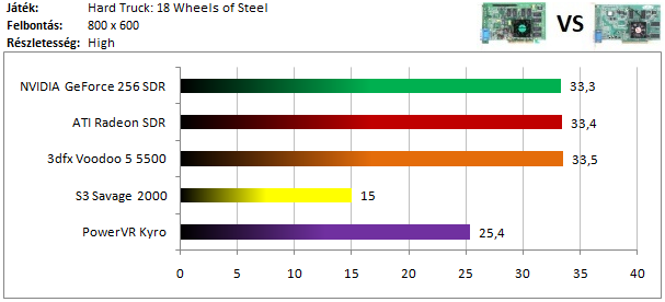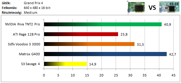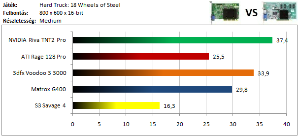 Régóta nem láttuk már a Matrox G400 győzelmét ebben a kártyacsoportban, ám ezúttal kis mértékben ugyan, de le tudta győzni a TNT2-t. A Voodoo 3 lemaradása már nagyobb, a Rage 128 Pro pedig nem tudta a játékot élvezhető sebességgel futtatni a tesztelt beállítások mellett.