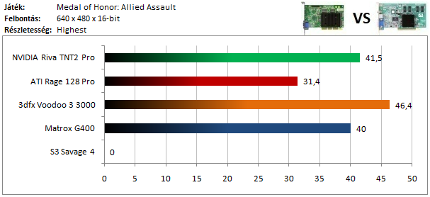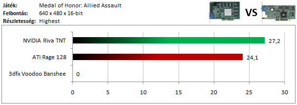 A Banshee-val megtagadta a futást a játék, multitextúrázásra képes videokártyát hiányolva. A TNT így ismét megnyerte ezt a kategóriát, de ezúttal a Rage 128 lemaradása sem vészesen magas.