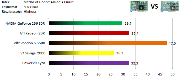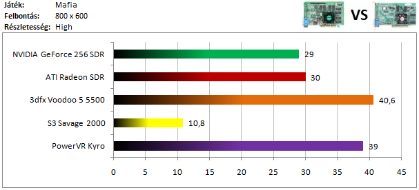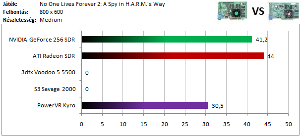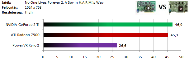 Kiválóan szerepelt a Kyro 2, hiszen legyőzte HW T&L támogatású ellenfeleit, melyek közül kis mértékben a GeForce bizonyult gyorsabbnak.
