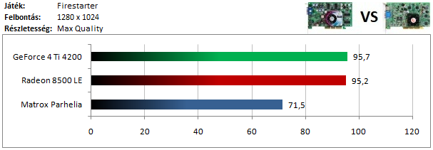 A DX8-as kártyák között elhúz az NVIDIA versenyzője, de a Parhelia még a Radeon-tól is jócskán kikap.