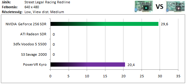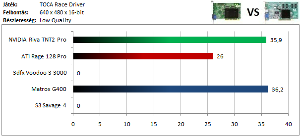A TNT2 és a Matrox G400 szinte azonos eredménnyel zárják a tesztet, de velük már csak a legalacsonyabb minőségi szinten reménykedhetünk játszható sebességben. A Voodoo 3 és a Savage 4 nem tudta futtatni a játékot.