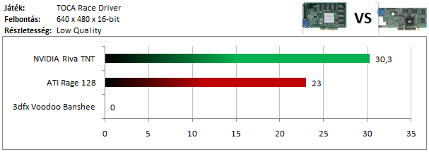 A TNT még éppen csak játszható eredményt produkál a legalacsonyabb beállítások mellett, de a Rage 128-cal erre nem lesz esélyünk.