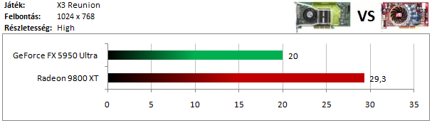 Az FX-en lefagyott a program, így a 9800 XT ezúttal ellenfél nélkül maradt.