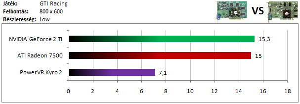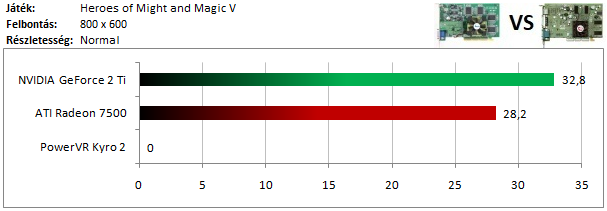A DX8-as típusok lehet, hogy a maguk szintjén elbírták volna a Medium beállításokat is. Ezúttal is az ATI versenyzőjénél van az előny. A DX7-es kártyákkal elindult ugyan a játék, de textúrákat egyáltalán nem jelenített meg, így nem volt értelme próbálkozni velük.