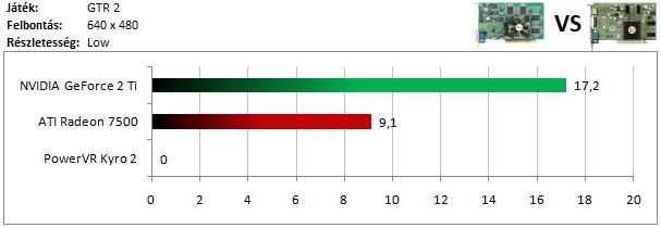 A DX7-es kártyák közül a GeForce bizonyult erősebbnek, míg a Kyro-val lefagyott a program.