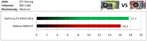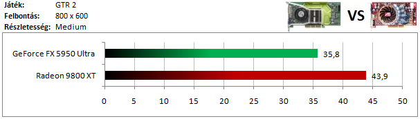 Érdekes, hogy az előző évben bemutatott GT Legends című játék, mely ugyanerre a motorra épült, a Radeon győzelmét hozta a legerősebb DX9-es páros esetén, ám ebben az esetben most a GeForce állt az élre, még ha előnye nem is túl számottevő a Radeonhoz képest.