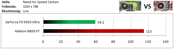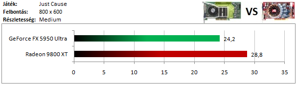 A nem túl magas színvonalú grafika ellenére a legrégebbi DX9-es kártyák már csak a közepes minőségi szinten adnak megfelelő sebességet. A 9800 XT előnye az FX 5950 Ultra előtt kisebb a megszokottnál.