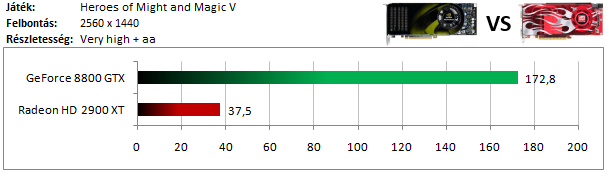 A 8800 GTX előnye a megszokottnál is drasztikusabb ebben a játékban, hiszen több, mint négyszer akkora sebességet ért el, mint a 2900-as Radeon. Ez az eredmény jól mutatja, hogy megfelelő driveres optimalizálás hiányában a Terascale architektúra teljesítménye mennyire össze tud zuhanni.