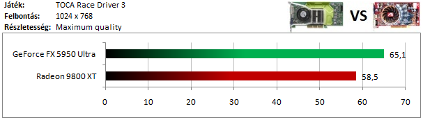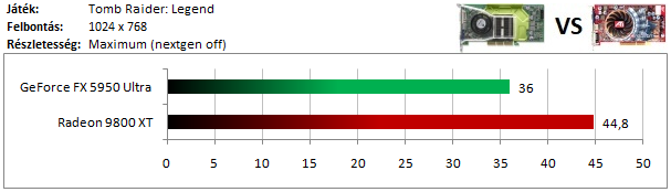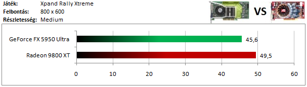 Az FX kis mértékben képes megelőzni a 9800 XT-t ebben a játékban, ami alacsony shaderhasználatra utal.