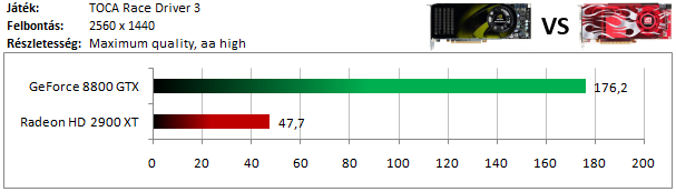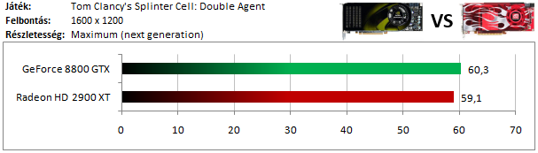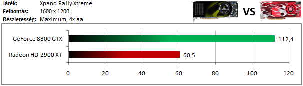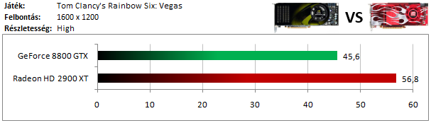 A sok megalázó vereség után örömteli látni egy olyan mérési eredményt, ahol a HD 2900 XT győzedelmeskedni tudott a 8800 GTX felett. A játéknak viszont hatalmas fekete pont jár a widescreen felbontások támogatásának hiánya miatt.